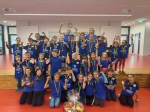 Am Ende durften wir uns über den 1. Platz als teilnahmestärkste Schule freuen. Entsprechend groß war der berechtigte Jubel, als ein großer Präsentkorb und – natürlich – der entsprechende Pokal überreicht wurden.
